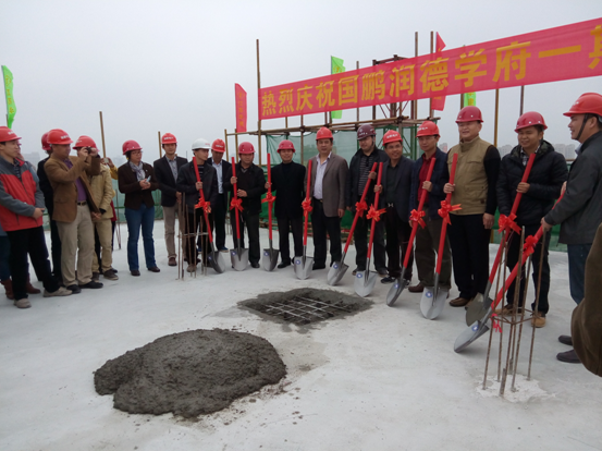 新年大吉——國鵬潤德學府順利封頂 時間:2015-01-27 3043 1月26日上午,由惠州公司承建的國鵬潤德學府一期工程在熱烈喜慶的氣氛中順利封頂。廣東國鵬集團伍貴廉董事長、傅強總經理、沈總、鄭總等領導參加儀式,公司總工程師龐文榮、九處主任周才富及項目部管理人員參加了封頂儀式。 國鵬潤德學府位于仲愷大道與和暢六路交匯處,緊鄰仲愷總部經濟大廈。項目占地約3.3萬平米,總建筑面積約15.6萬平米,分兩期開發(fā),共規(guī)劃住宅7棟。一期工程于2014年4月15日開始施工,總建筑面積72600平方米,由3棟塔樓組成,分別為29層、29層、30層,最高96.05米。項目外立面現代簡約時尚,園林舒適優(yōu)雅,配有幼兒園,小學,商業(yè)街等配套設施,是國鵬集團在仲愷中心地區(qū)開發(fā)的地標建筑,未來將打造成學位府邸、人文社區(qū)。