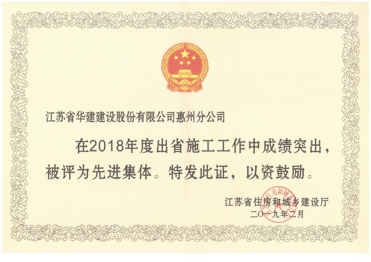 惠州公司喜獲江蘇出省施工多項(xiàng)榮譽(yù)