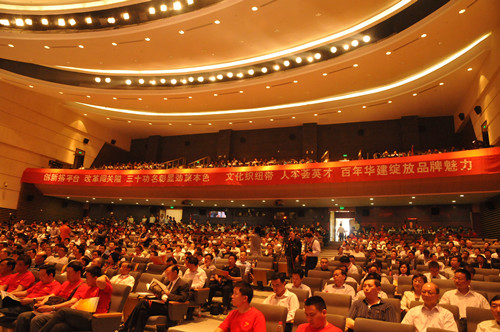 5月9日下午,公司在揚州京杭之心會議中心隆重舉行成立三十周年慶祝大會。全國人大環(huán)資委原主任委員毛如柏出席慶典。揚州市代市長朱民陽代表市委、市政府向公司成立三十周年表示祝賀,并希望公司圍繞“百年企業(yè)、千億規(guī)模”的發(fā)展目標,加快做大、做強、做優(yōu)、做久。朱民陽代市長進一步指出,建筑業(yè)是揚州的優(yōu)勢產業(yè)和富民產業(yè),江蘇華建以櫛風沐雨、勇立潮頭的勇氣,以敢為人先、勇于創(chuàng)先的銳氣,以創(chuàng)新創(chuàng)優(yōu)、創(chuàng)業(yè)創(chuàng)造的志氣,以鑄造精品、追求卓越的豪氣,搶抓機遇、脫穎而出,是揚州的驕傲,揚州的榮耀,揚州的自豪。公司董事長陸金龍在慶典上匯報了公司三十年來的發(fā)展業(yè)績和今后的發(fā)展構想。儀式上,公司還與戰(zhàn)略合作單位互換戰(zhàn)略合作協(xié)議書。
