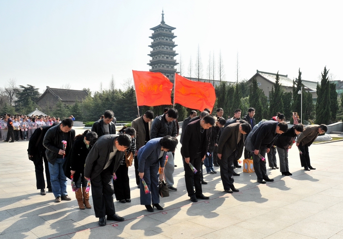 總部黨團組織祭掃烈士陵園 時間:2012-04-01 4549 4月1日下午,公司總部機關黨支部、團委組織機關黨團員和入黨積極分子前往揚州烈士陵園開展清明祭掃活動。在沉重舒緩的哀樂聲中,大家向革命烈士默哀并敬獻了挽聯和鮮花,緬懷那些為了國家獨立、民族解放和社會主義現代化建設獻出寶貴生命的革命先烈,表達了用實際行動慰藉革命烈士、建設偉大祖國、實現民族復興的堅定決心。公司黨委委員、紀委書記錢啟明參加了活動。
