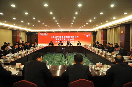 4月27日下午,江蘇省華建建設(shè)股份有限公司股東大會2013年會暨董事會、監(jiān)事會五屆七次會議在揚州召開。會議由陸金龍董事長主持,10名股東代表、11名董事、4名監(jiān)事出席會議,公司高級管理人員、各分支機構(gòu)和總部各部室負(fù)責(zé)人、公司律師團代表列席會議。會議聽取和審議通過了副董事長、總經(jīng)理宗有農(nóng)同志所作的董事會和經(jīng)營層工作報告,監(jiān)事會主席吳士茂所作的監(jiān)事會工作報告,公司總會計師李長棟同志所作的《關(guān)于2012年度財務(wù)決算和2013年度財務(wù)預(yù)算方案的報告》和《關(guān)于2012年度股利分配方案的報告》。