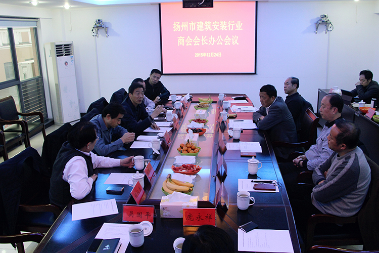 12月24日下午,揚州市建筑安裝行業(yè)商會在江蘇滬武建設集團會議室召開2015年度會長辦公會,陸金龍會長主持會議,各位副會長、秘書長參加會議,揚州市委統(tǒng)戰(zhàn)部副部長、市工商聯(lián)副主席兼黨組書記、市總商會副會長趙振東和市工商聯(lián)(總商會)會員處處長田德兵應邀出席。
