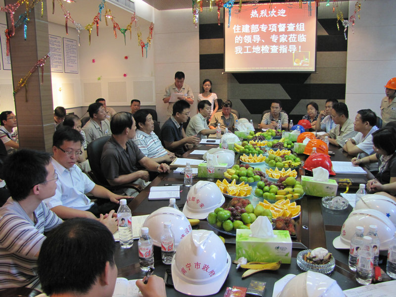 住建部建筑施工安全專項(xiàng)督查組檢查指導(dǎo)廣西麗原•天際城項(xiàng)目 時(shí)間:2010-10-14 5275 9月18日上午,國家住房城鄉(xiāng)建設(shè)部建筑施工安全專項(xiàng)督查組蒞臨我公司廣西麗原·天際城工地檢查指導(dǎo)工作,勘察了施工現(xiàn)場的實(shí)體安全狀況,查閱了施工質(zhì)量安全技術(shù)資料,檢查了我公司的資質(zhì)、安全許可、三類人員與特種作業(yè)人員持證的情況。項(xiàng)目部的安全防護(hù)與文明施工工作受到了督查組的一致好評,住建部工程質(zhì)量安全監(jiān)管司王樹平副司長在知道我們爭創(chuàng)“魯班獎(jiǎng)”的情況后,提出了許多寶貴的意見,并預(yù)祝我們的質(zhì)量目標(biāo)得以圓滿實(shí)現(xiàn)。 另訊,此前麗原·天際城工程項(xiàng)目被評為2010年上半年廣西自治區(qū)文明工地。