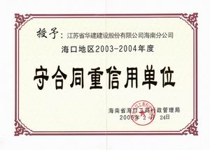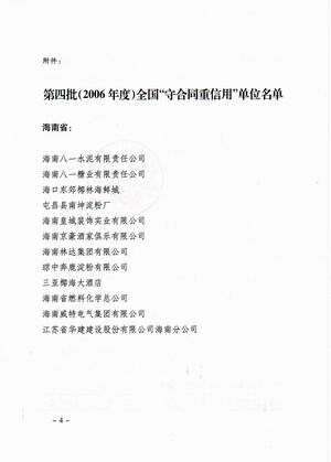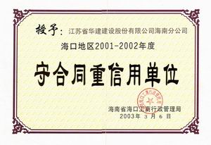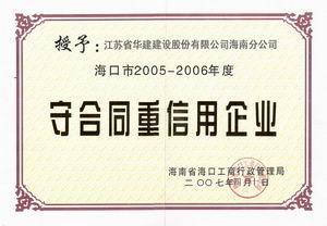 企業誠信榮譽 時間:2019-01-01 8875 2001-2002年度海口市守合同重信用 2003-2004年度海口市守合同重信用 2005-2006年度海口市守合同重信用 2002-2004年度海南省守合同重信用 2006年度全國守合同重信用1 2006年度全國守合同重信用2 2006年度全國守合同重信用3 2006年度全國守合同重信用4 2012年度海南省守合同重信用