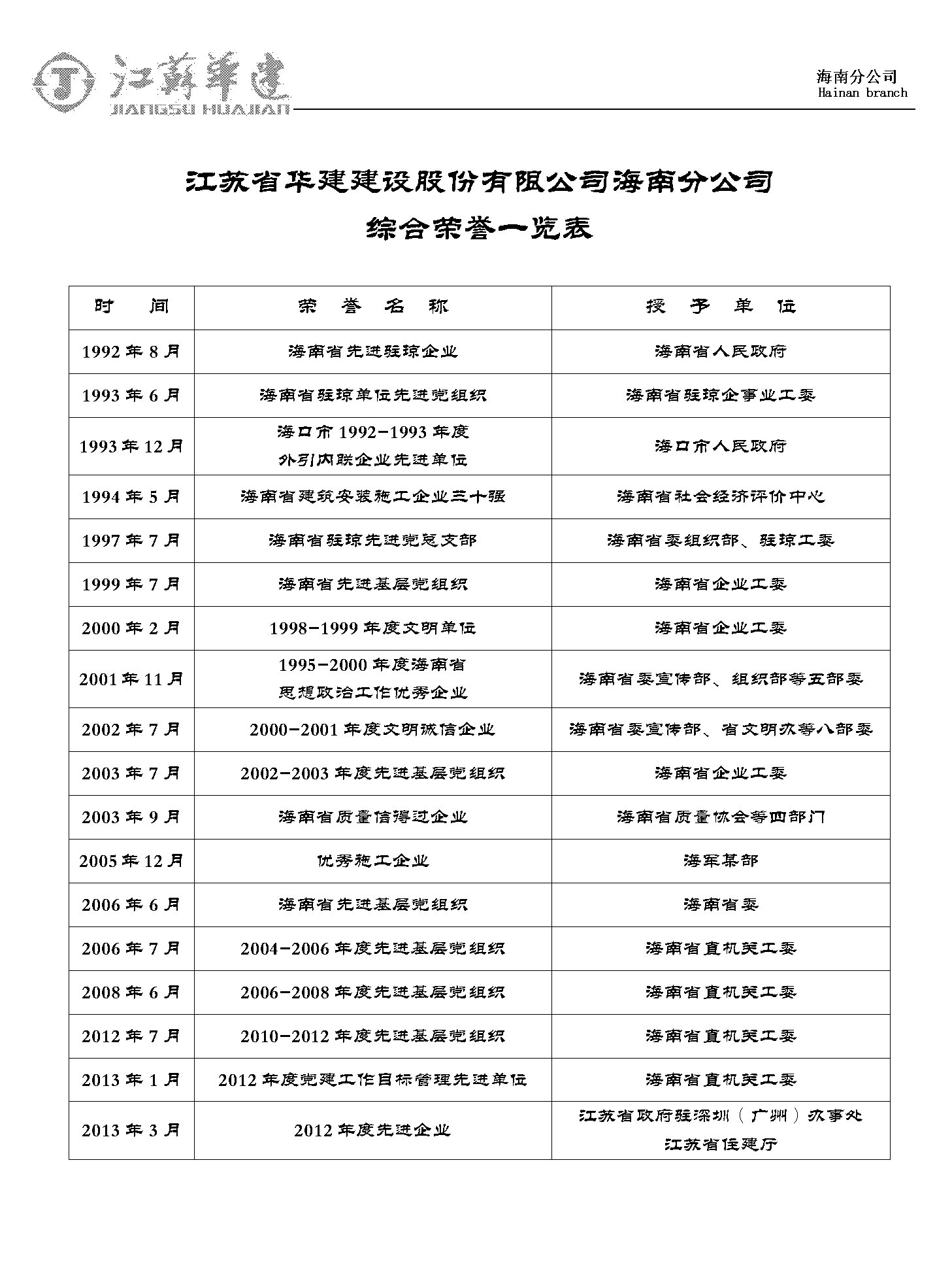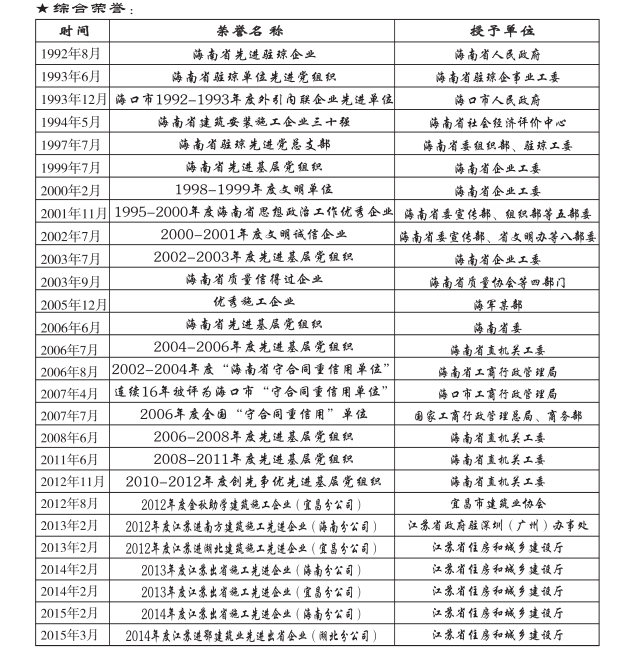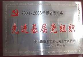 1995-2000海南省思想政治工作優秀企業     2004-2006省直機關先進基層黨組織
