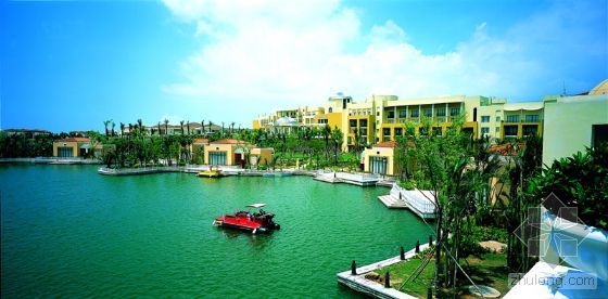 該建筑群具有獨(dú)特的景觀與風(fēng)格,生態(tài)環(huán)境和諧完美,以海洋溫泉為核心,由兩座五星級大酒店、神秘島主題樂園、漁人碼頭、夢幻劇場、加勒比海岸、高爾夫項目、休閑垂釣區(qū)以及自駕車營地組成,是中國目前功能最齊全、綜合配套最完善的超大型旅游休閑度假區(qū)和國際會議中心。2007年4月,海泉灣度假區(qū)被國家旅游局授予全國首家“國家旅游休閑度假示范區(qū)”稱號。