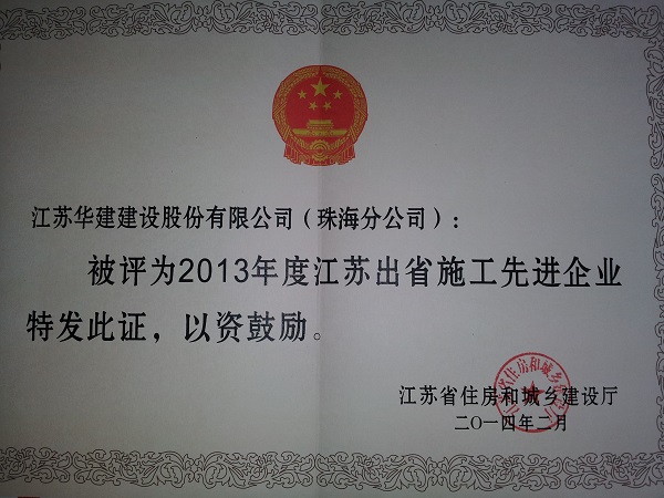 珠海公司獲江蘇省政府駐深圳辦事處和江蘇省住建廳聯合表彰 時間:2014-04-29 4745 日前,江蘇省人民政府駐深圳(廣州)辦事處和江蘇省住房和城鄉建設廳聯合表彰了一批2013年度江蘇進廣東、廣西、福建、海南施工先進企業和先進個人。江蘇華建珠海分公司被表彰為2013年度江蘇出省施工先進企業,珠海公司副總經理周學軍被表彰為2013年度江蘇出省施工優秀企業經理,曹亞明同志被表彰為優秀建造師。 此外,珠海公司副總經理盧達被江蘇省住房和城鄉建設廳駐南方辦事處表彰為2013年度江蘇省進廣東施工質量安全管理先進個人,李成祥同志被表彰為經營財務管理先進個人。