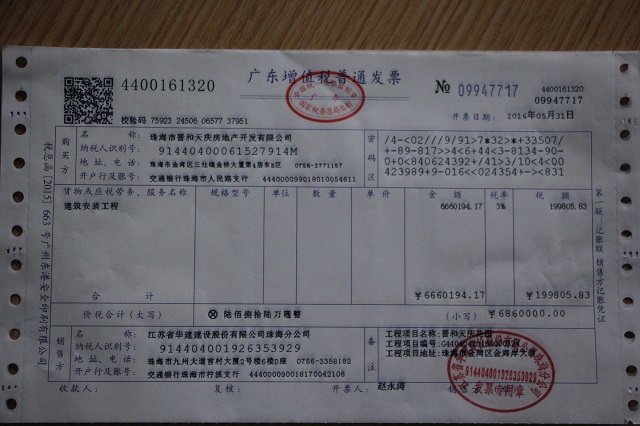 珠海區域公司第一張增值稅發票成功開具 時間:2016-06-01 2954 建筑行業“營改增”自5月1日起正式實施,公司領導高度重視“營改增”工作,先后完成了稅控設備軟硬件更新、數次的“營改增”知識培訓及交流會,并在主管國稅局完成了有關一般納稅人認定、增值稅發票額度調整、公司老項目備案等工作。 5月31日,財務處成功開具了第一張增值稅普通發票,此票為公司第五項目部承擔施工任務的晉和天慶花園總承包工程使用,走出了公司“營改增”工作的堅實一步。