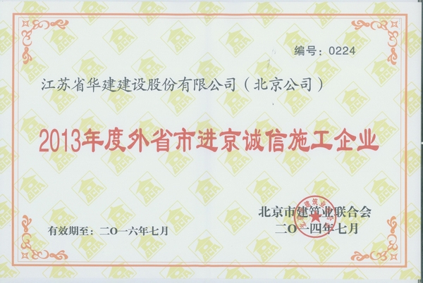 日前,江蘇華建北京公司被北京市建筑業聯合會授予“北京建設行業誠信企業”稱號。近年來,北京市...