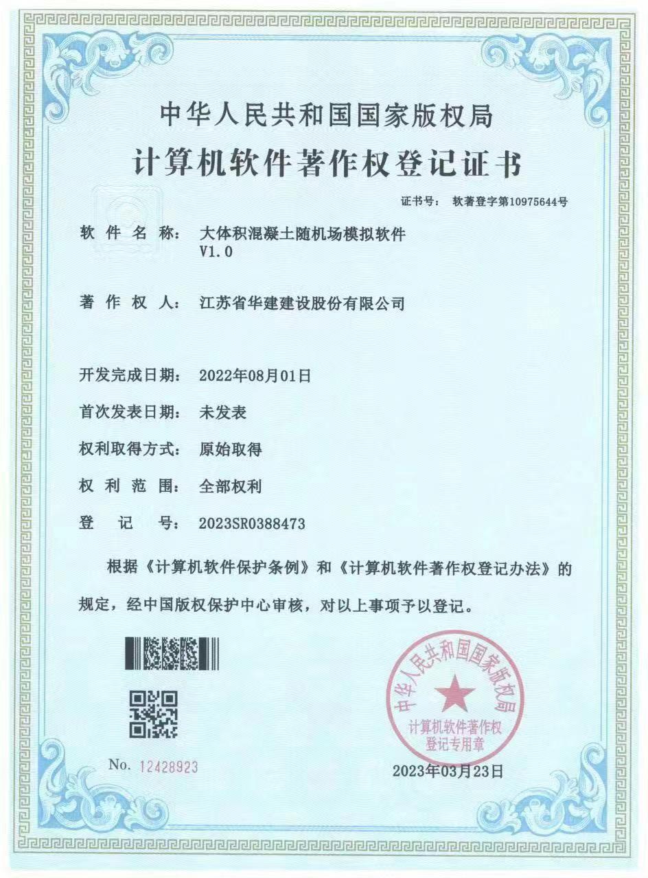 近日,國家版權局對江蘇華建自主研發(fā)的《大體積混凝土隨機場模擬軟件V1.0》軟件產品進行了知...