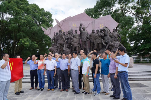 上海分公司黨總支組織開(kāi)展“紅色之旅”教育 時(shí)間:2016-08-16 4164 8月12日,上海分公司黨總支組織部分黨員干部和入黨積極分子共18人,赴愛(ài)國(guó)主義教育基地福建古田開(kāi)展“促兩學(xué)一做,走紅色之旅”教育活動(dòng),在“主席園”向毛主席像敬獻(xiàn)花籃,在“豐碑軍魂”雕像前面對(duì)黨旗重溫入黨誓詞,還仔細(xì)參觀古田會(huì)議地址和紀(jì)念館,回顧緬懷了老一輩無(wú)產(chǎn)階級(jí)革命家的不朽事跡。大家牢記“古田會(huì)議永放光芒”精神,紛紛表示:“不忘初心,繼續(xù)前行”。