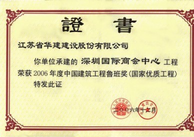 深圳國際商會中心位于深圳市福田中心區(qū)6-3地塊,是深圳市CBD標(biāo)志性建筑,與會展中心隔街相望,是深圳會展經(jīng)濟圈的地標(biāo),也是深圳第一座擁有智能門禁系統(tǒng)、第一座擁有酒店式行車大廳、中心區(qū)第一座擁有商務(wù)直升機停機坪的寫字樓。 本工程是集辦公與商業(yè)為一體的超高層民用建筑,地下3層地上55層,總建筑面積為134081.38平方米,建筑高度216米,結(jié)構(gòu)形式上,主樓為內(nèi)筒外框勁性混凝土結(jié)構(gòu),外墻裝飾主要采用玻璃幕墻,干掛花崗巖和復(fù)合鋁板。本工程于2002年9月3日開工,2004年12月16日竣工。2003年下半年被評為深圳市優(yōu)質(zhì)結(jié)構(gòu)工程,2004年下半年先后通過了深圳市建筑業(yè)新技術(shù)應(yīng)用示范工程驗收和江蘇省第八批新技術(shù)應(yīng)用示范工程驗收,新技術(shù)應(yīng)用“總體上達到國內(nèi)領(lǐng)先水平”。此工程應(yīng)用了建筑業(yè)10項新技術(shù)中的9項,其他新技術(shù)8項,重點創(chuàng)新新技術(shù)2項。在施工過程中,多次受到有關(guān)各方組織的觀摩會、參觀會,2005年獲深圳市優(yōu)質(zhì)工程“金牛獎”、廣東省“金匠獎”、江蘇省“揚子杯”,并榮獲“中國十大金牌寫字樓”榮譽稱號。2006年獲全國建筑最高獎——魯班獎。