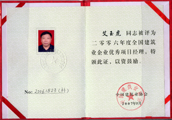 艾玉虎同志對事業執著,做事誠信,管理上路,一項項優質工程從他手中接二連三誕生。1996—2011年15年時間里,艾玉虎帶領他的團隊在深圳共承擔施工任務23項,其中10萬平方米以上規模工程達7項。1997年,在他帶領下,在1.3公里長布吉河箱涵上建起了超乎想象、令人欽佩的19棟商住樓,受到深圳市布吉鎮鎮政府的表揚和嘉獎。擔任項目經理的深圳國際商會中心工程和深圳榮超經貿中心工程榮獲全國建設工程最高質量榮譽魯班獎。高度273米、建筑面積13萬平方米、62層的綠景紀元大廈工程為深圳市超高層標志性建筑。目前,他和他的團隊又在意氣奮發,沖刺著人生和事業的新高度。