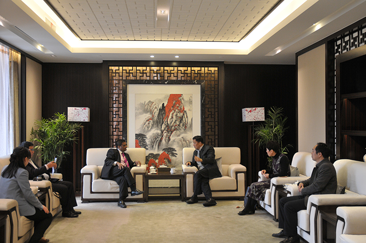 4月7日下午,來揚出席“中國揚州——印度創新與產業投資論壇”的印度駐滬總領事Prakash Gupta(古光明)專程到江蘇華建訪問,市海促會常務副會長、揚州建工控股公司副總經理兼江蘇華建監事會主席吳士茂會見了古光明領事。古光明領事在參觀了華建展示中心后,介紹了印度政府針對外商投資的新政以及潛在的投資項目,如道路公路交通、港口運輸、電力、民航、鐵路在內的基礎設施建設產業,以及未來5年內印度擬建設100個智慧城市等相關信息,希望華建這樣的優秀企業能盡早到印度尋找發展機會。吳士茂主席感謝古光明領事對華建的信任,表示華建將緊跟國家“一帶一路”發展戰略,認真研究印方提供的項目信息,爭取積極參加印度的發展建設,共同推進合作共贏。
