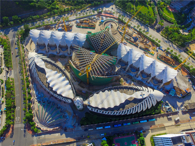 瑪絲菲爾總部中心位于深圳龍華大浪時尚小鎮(zhèn),占地面積49800m2,建筑面積11萬㎡,總投資10億元。工程建筑外形采用當前最為時尚、最具風格的現(xiàn)代仿生學設(shè)計理念,所有建筑元素設(shè)計靈感都源于自然。建筑群俯視猶如展翅雄鷹,構(gòu)件造型都按拋物線、螺旋線等幾何規(guī)律設(shè)計。該建筑為國內(nèi)目前面積最大的仿生藝術(shù)建筑、深圳龍華時尚小鎮(zhèn)的代表性建筑,在國內(nèi)建筑界引起了包括中國工程院院士在內(nèi)的建筑專家的關(guān)注,未來有望成為國內(nèi)時裝秀的主會場。工程于2009年7月開工,目前一期工程裝修完成50%,二期工程主體結(jié)構(gòu)基本完成,進入裝修階段。一期工程1、2號廠房設(shè)有27對計54個葉片,每對葉片造型都不一致。中間設(shè)蓮花狀交通塔,屋頂設(shè)有波浪狀屋蓋。二期工程3、4號廠房分別設(shè)有6個雙曲葉面板、5片網(wǎng)格梁和22個Y型鋼柱。