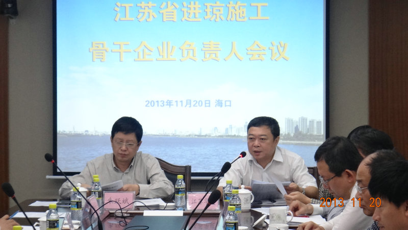 11月20日下午,由江蘇省住房和城鄉建設廳駐南方辦事處和海南省江蘇商會駐瓊建工專委會聯合主辦的2013年度“江蘇省進瓊施工骨干企業負責人會議”在江蘇華建海南分公司會議室召開,會議由江蘇省住建廳駐南方辦事處朱躍斌主任主持。