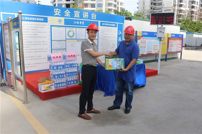 公司工會赴工地進行高溫慰問 時間:2019-06-11 2498 6月10日上午,海南分公司黨總支副書記、工會主席郁遠帶隊走訪慰問??诤愦蟆っ利惿稠椖坎?,檢查項目安全生產情況,并給奮戰在高溫、露天生產第一線的員工送去涼茶、綠豆、人丹等防暑用品,送去企業及工會組織的關懷。 在詳細詢問了工程推進情況和一線職工的工作、生活情況后,郁遠書記囑咐項目負責人要安排好施工現場人員的作息時間,做好降溫消暑保護措施。并叮囑一線的職工要注意人身與施工安全,合理安排工作時間,做到勞逸結合,確保高溫期的安全生產。(辦公室)